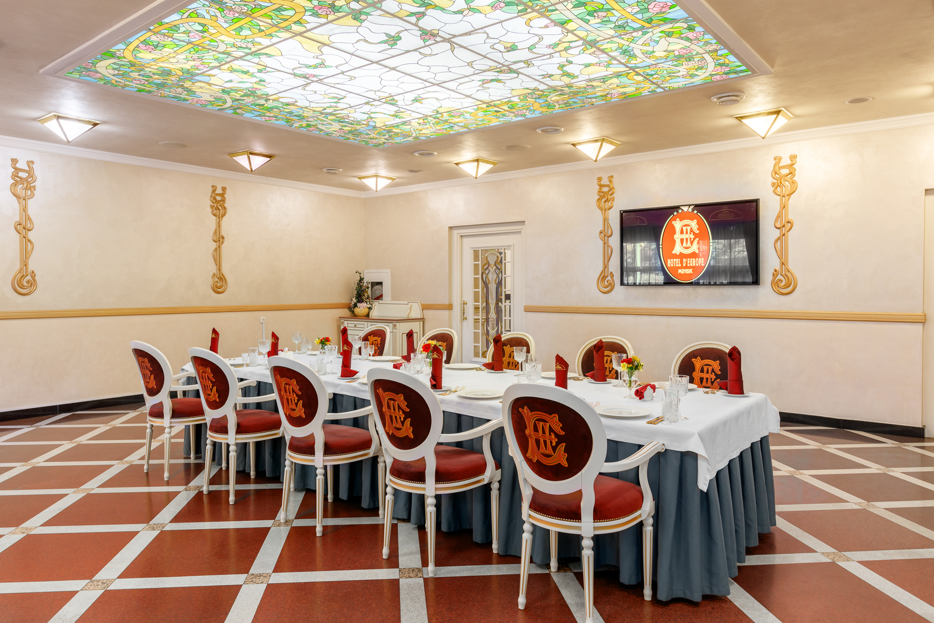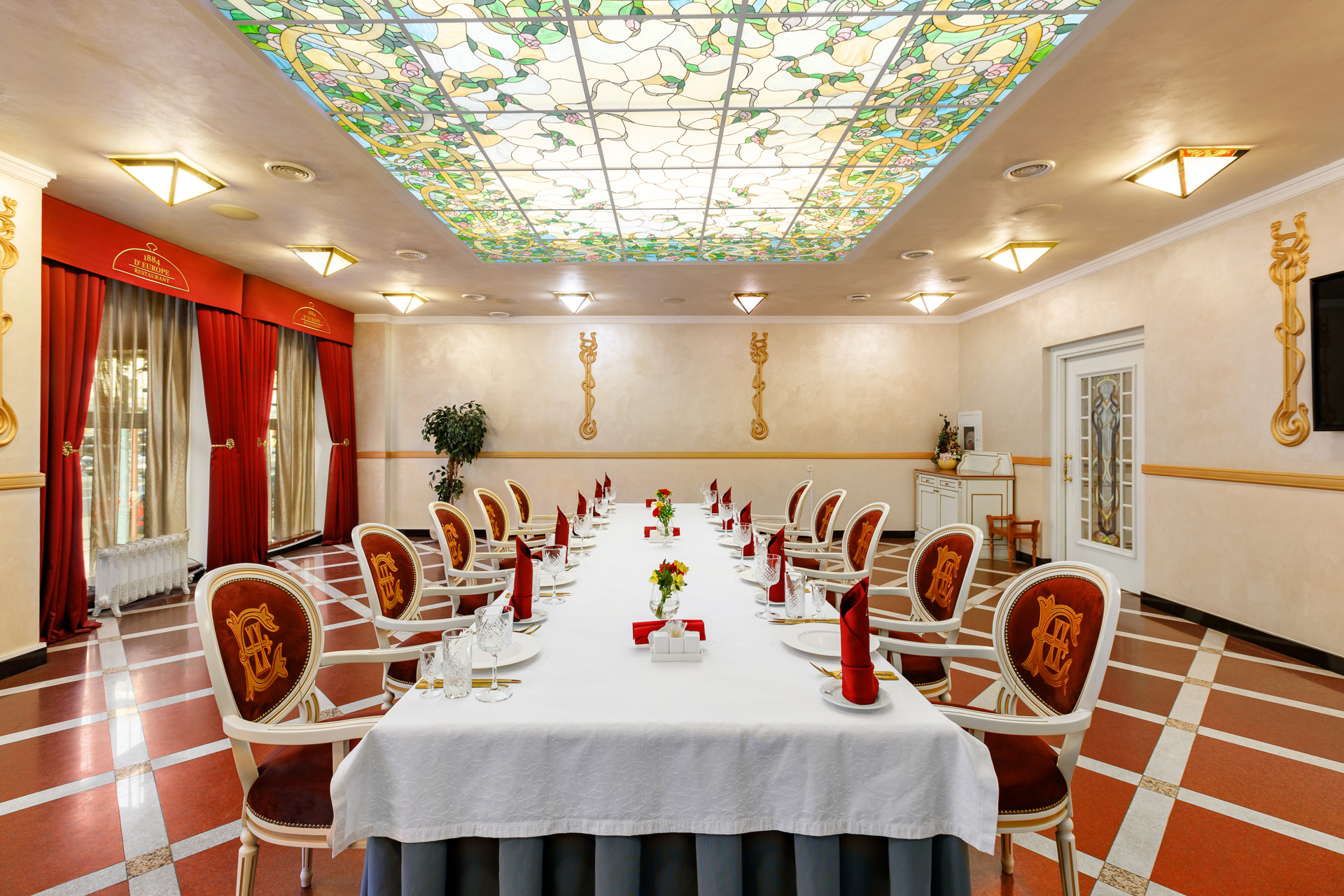 Ресторан с банкетным залом предлагает гостям изысканные блюда, подчеркивающие высокий уровень мероприятия. Опытная команда профессионалов позаботится о вашем комфорте, обеспечив качественное обслуживание.